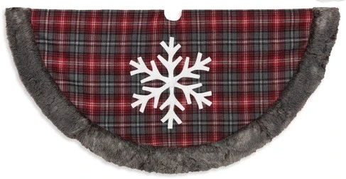 Christmas Tree Skirt Red/Gray With Snowflake – 48in