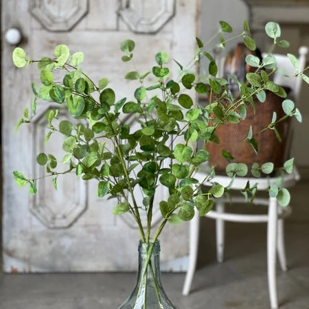 Eucalyptus Stem – Light Green Callum Eucalyptus – Spring & Summer Foliage Collection – This collection boasts dual colored penny leaf eucalyptus that is bound in a bundle of three with a twine tie. They can remain bound or can be separated.
