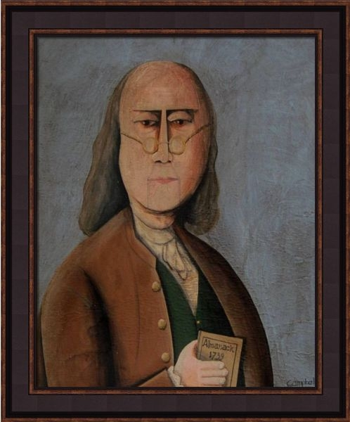 Ben Franklin by artist Tim Campbell. Framed in a black frame with walnut trim as shown from Christmas Tree Hill.