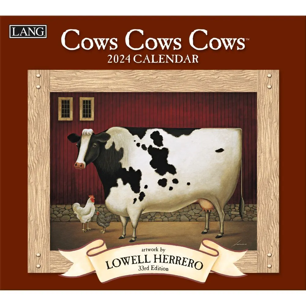 Twelve months of whimsical art featuring this favorite country character make the Cows Cows Cows Wall Calendar a sure bet for bovine fanciers everywhere! Artist Lowell Herrero adds rich layers of color to create vibrant works sure to captivate those who are crazy for cows.